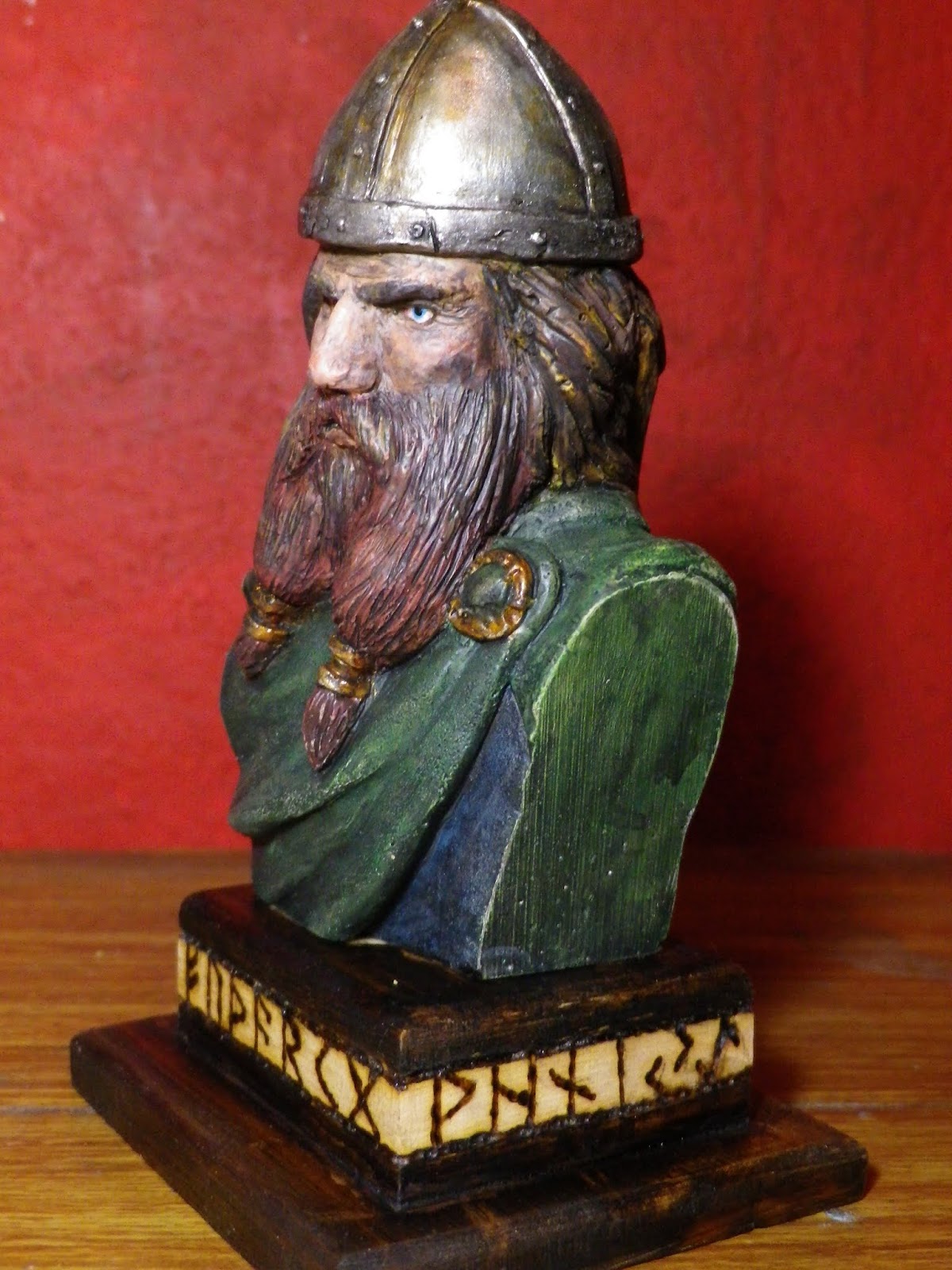Escultura de guerrero vikingo de 14 cm. de alto con peana.